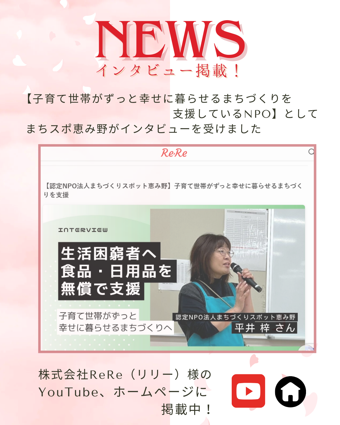 この度まちスポ恵み野は、株式会社ReRe(リリー)様のインタビューを受けました。