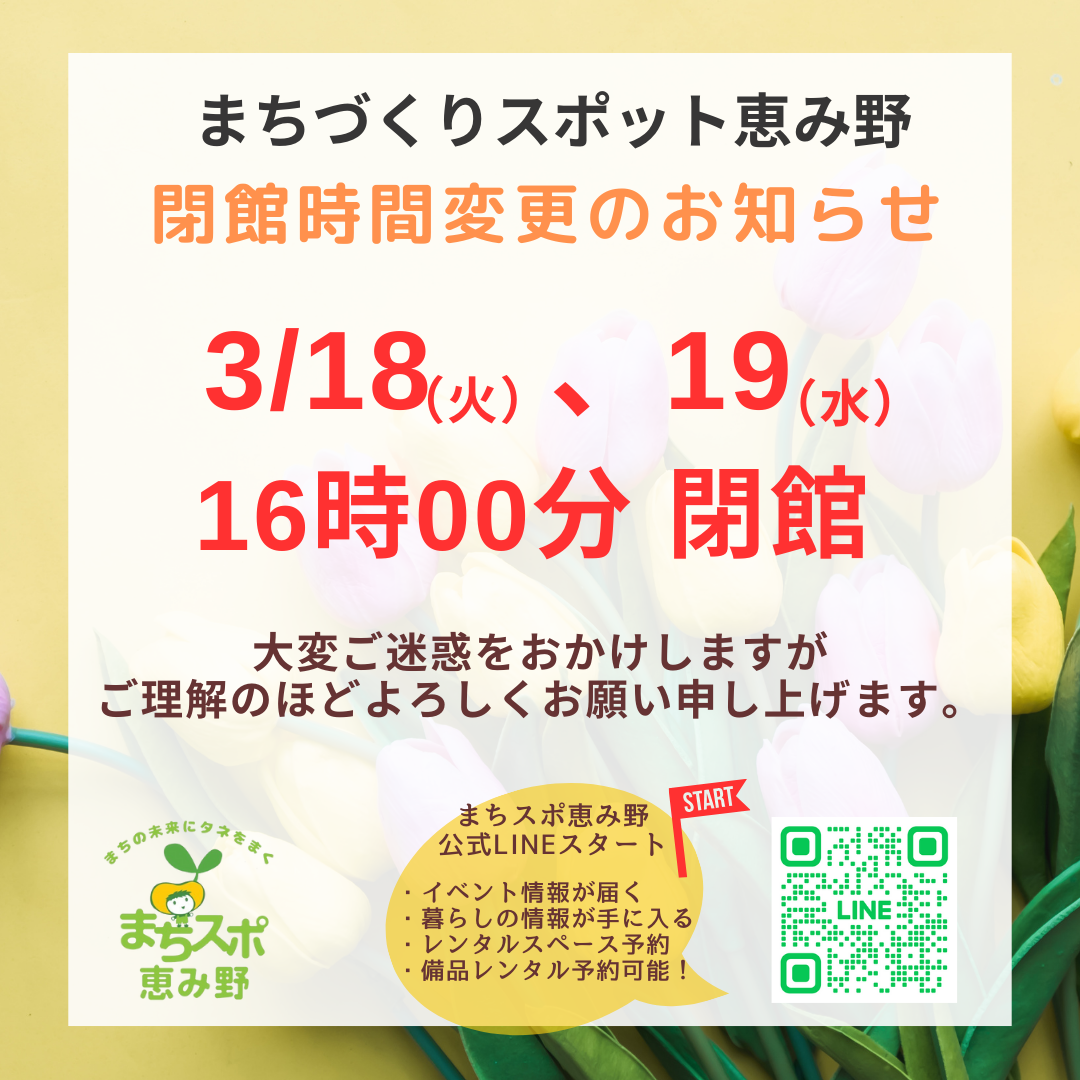 🕑まちスポ恵み野 閉館時間変更のお知らせ🕑