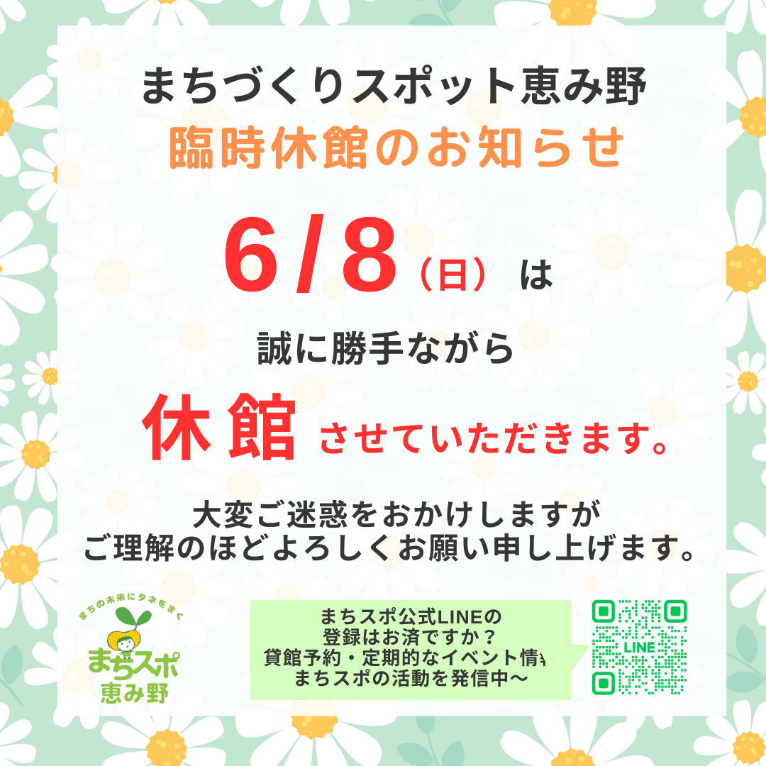 🕑まちスポ恵み野 臨時休館のお知らせ🕑